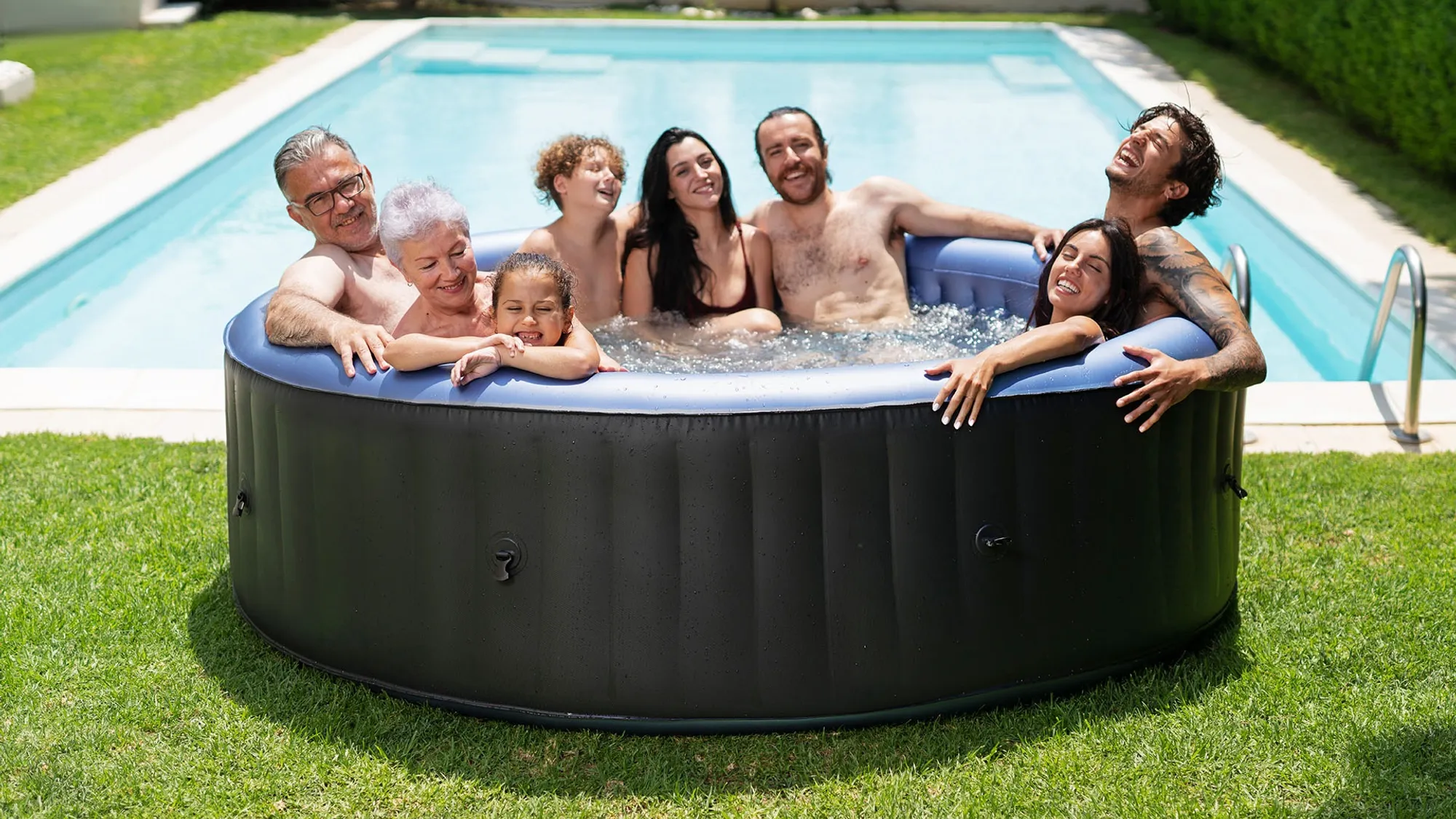 BERGEN features an eye-catching metallic blue interior paired with a premium charcoal grey exterior for a bold, contemporary look. With over 100 bubbling air jets delivering a revitalizing full-body massage, this spa is available in three sizes to perfectly suit any household retreat.