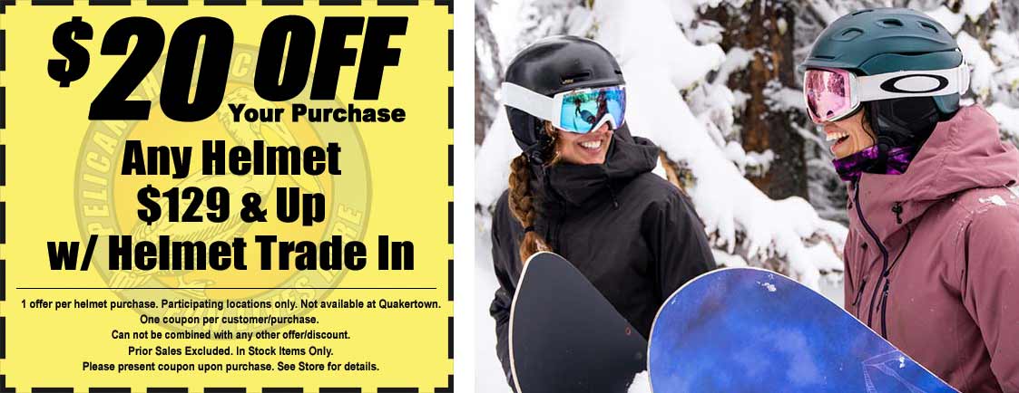 Trade in your old helmet at Pelican Shops and save! Bring in any used helmet and get $20 off the purchase of a new helmet priced $129 or more. It’s the perfect time to upgrade your protection and style for the season—safe, smart, and simple!